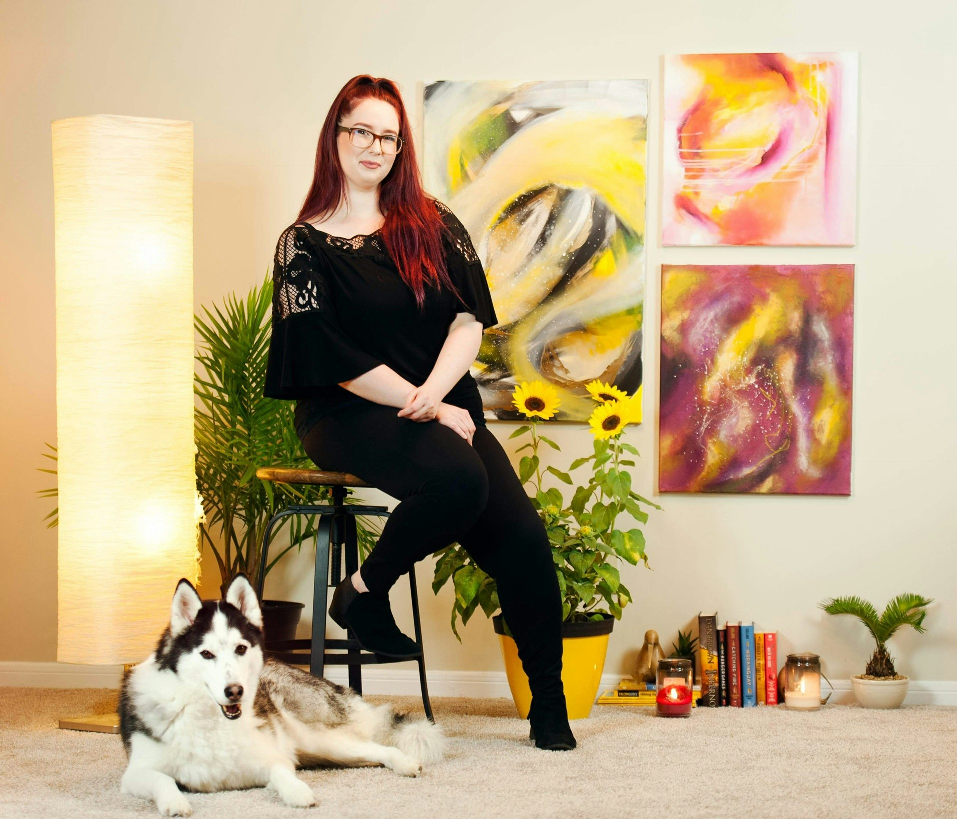 Kayla Midkiff began abstract painting as a way to enable her to communicate her abstract thoughts and emotions tangibly. She describes her abstract pieces as a personal representation of herself. The development of her creative process has allowed Kayla to connect with others who can understand her art without much explanation, and who intuitively comprehend the messages she conveys. Kayla says that she “never knew a form of communication that felt so genuine.”